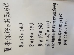 夏季休診のお知らせ
